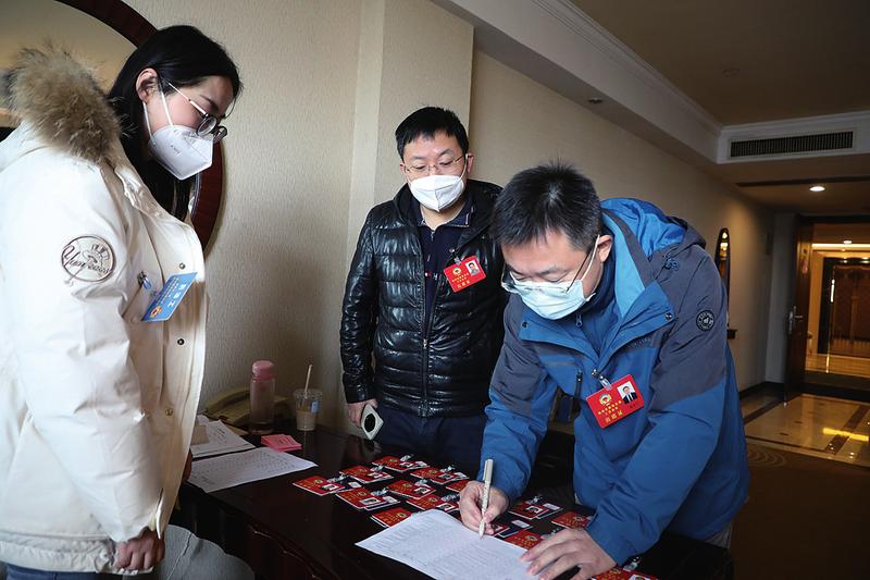 图为参加市政协五届二次会议的工商联界别委员报到。记者左泽川摄